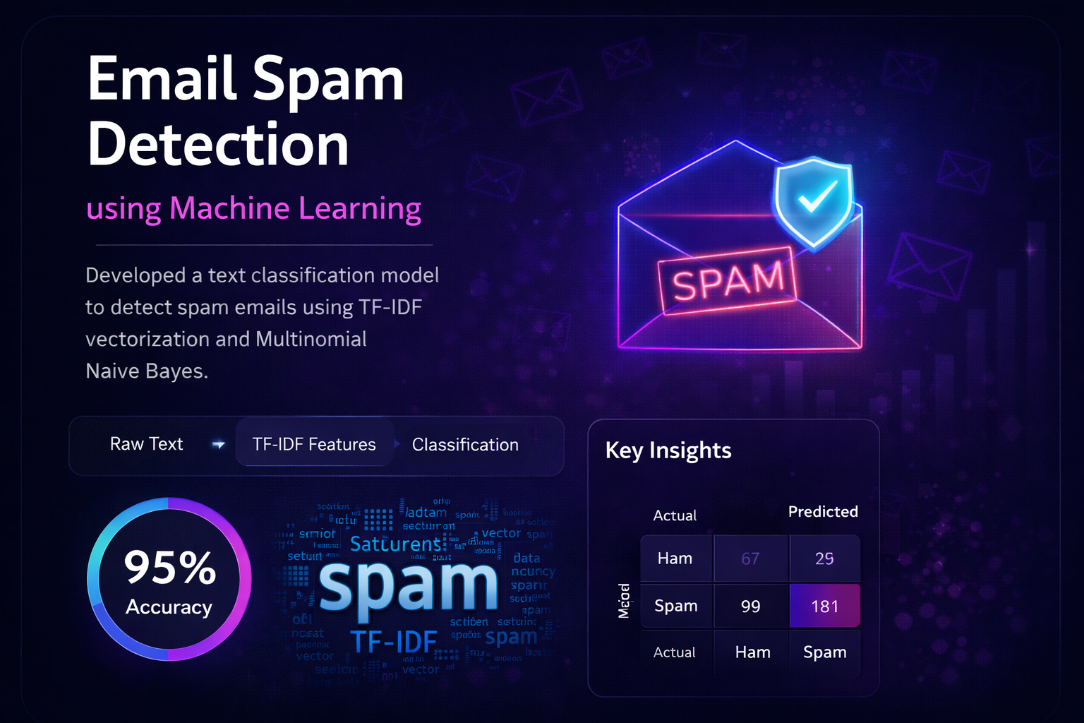 Built a text classification model using TF-IDF vectorization and Multinomial Naive Bayes to detect spam messages. Evaluated performance using accuracy, confusion matrix, and classification metrics.